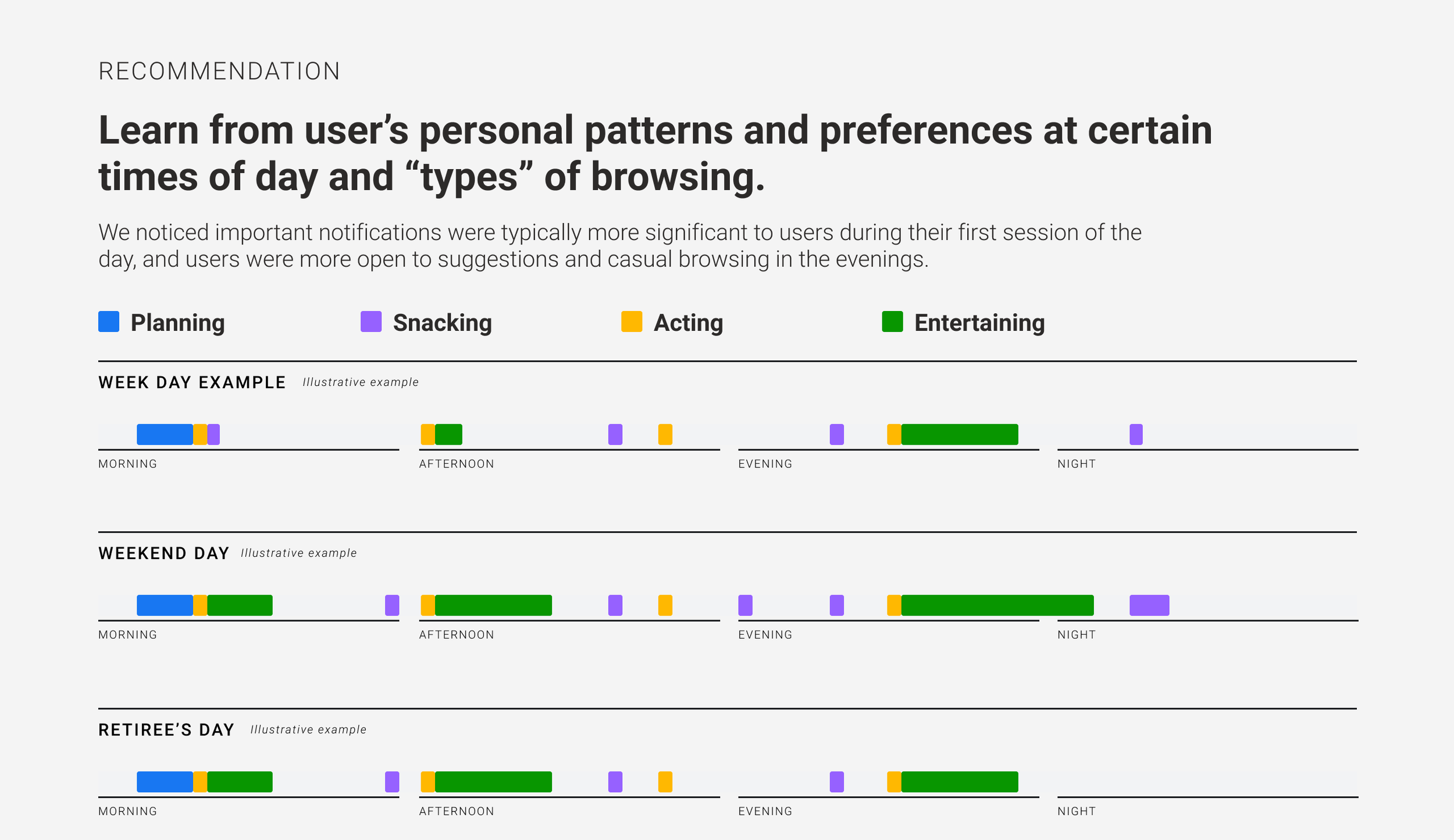 Adapting to users’ daily habits and surfacing relevant notifications at the right time make them more readily helpful.