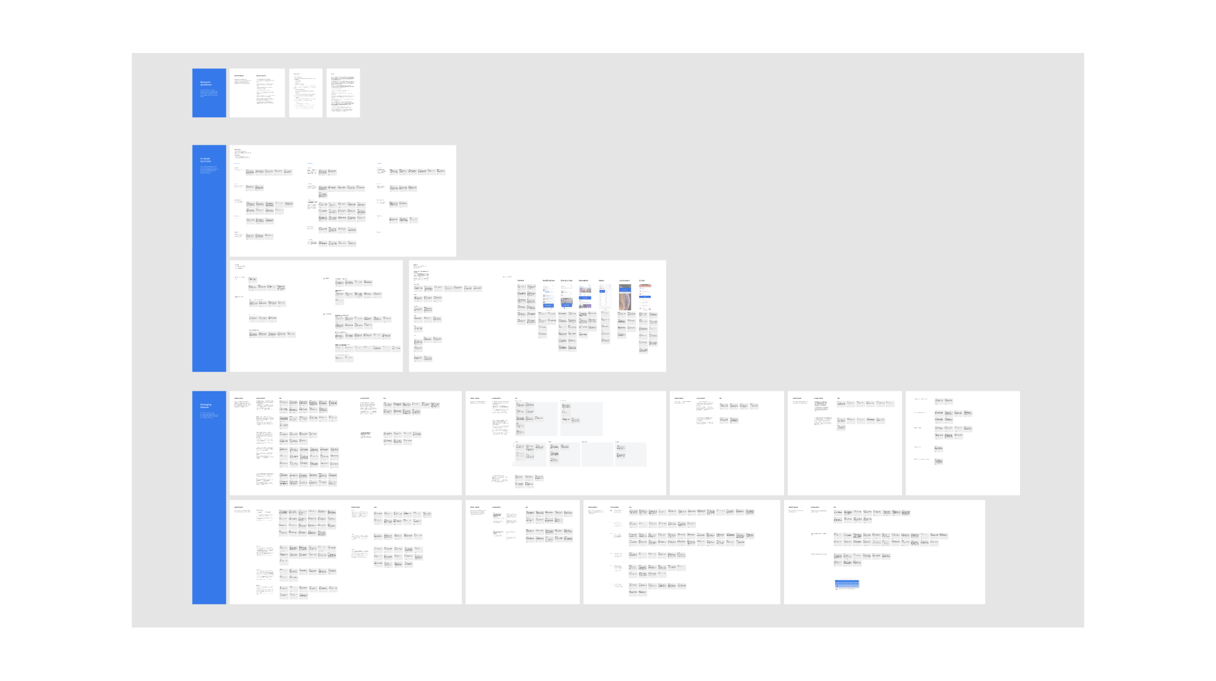 Our card sort activity allowed for a lot of discussion around what makes a notification valuable to users. And a number of patterns emerged in our synthesis of all 20 interviews. We conducted our synthesis in Figma as well. Below is a very high-level / low-resolution screenshot to protect participant information. There was a lot of detail to sort through.