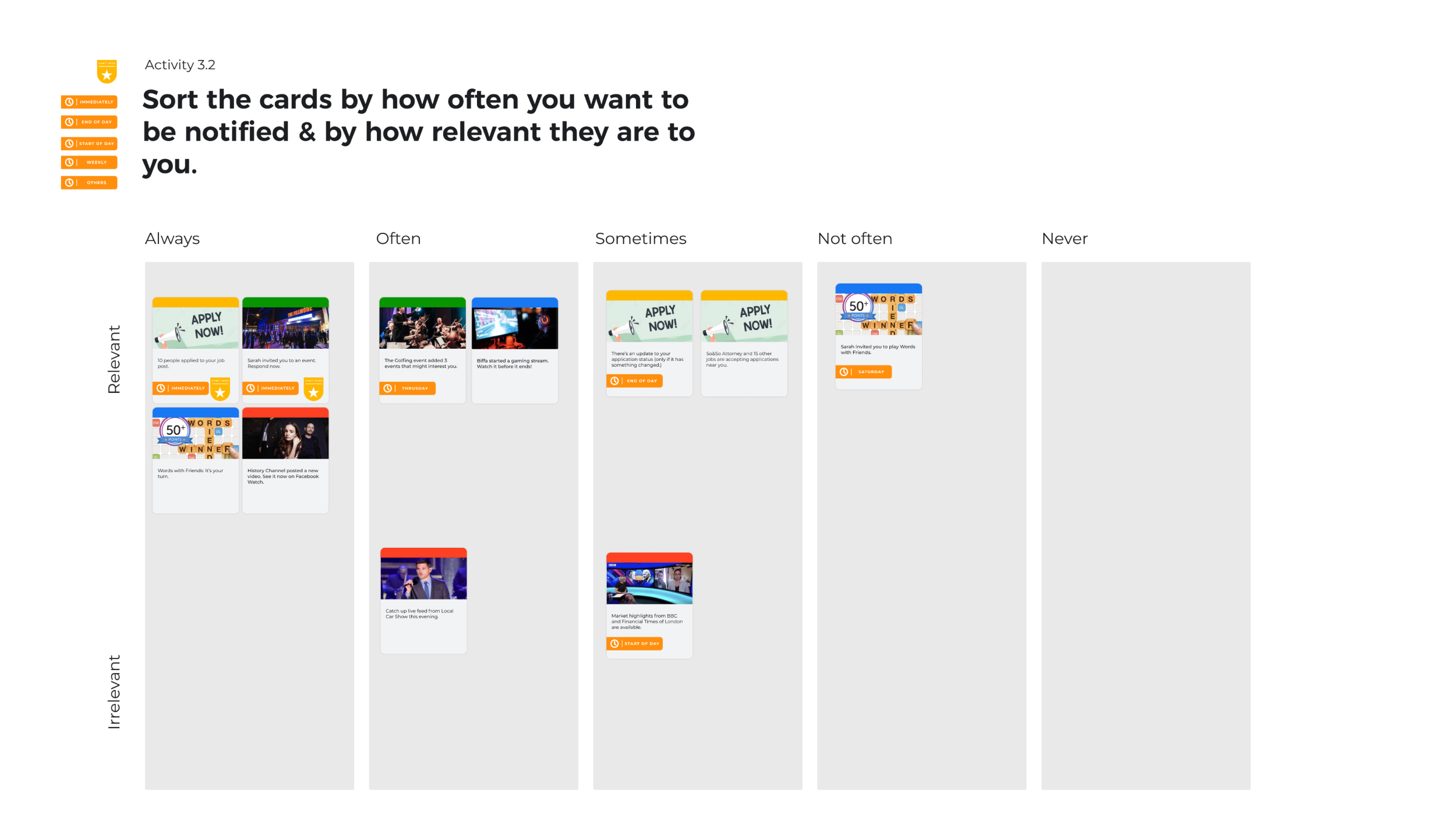 A social media company asked us how to make notifications “less annoying”. While we felt we could probably answer most of their questions right away, we did a thorough qualitative study and came back with a set of tools to ensure notifications are relevant to users.